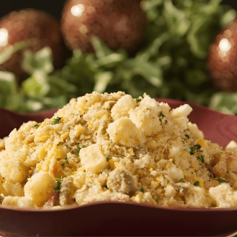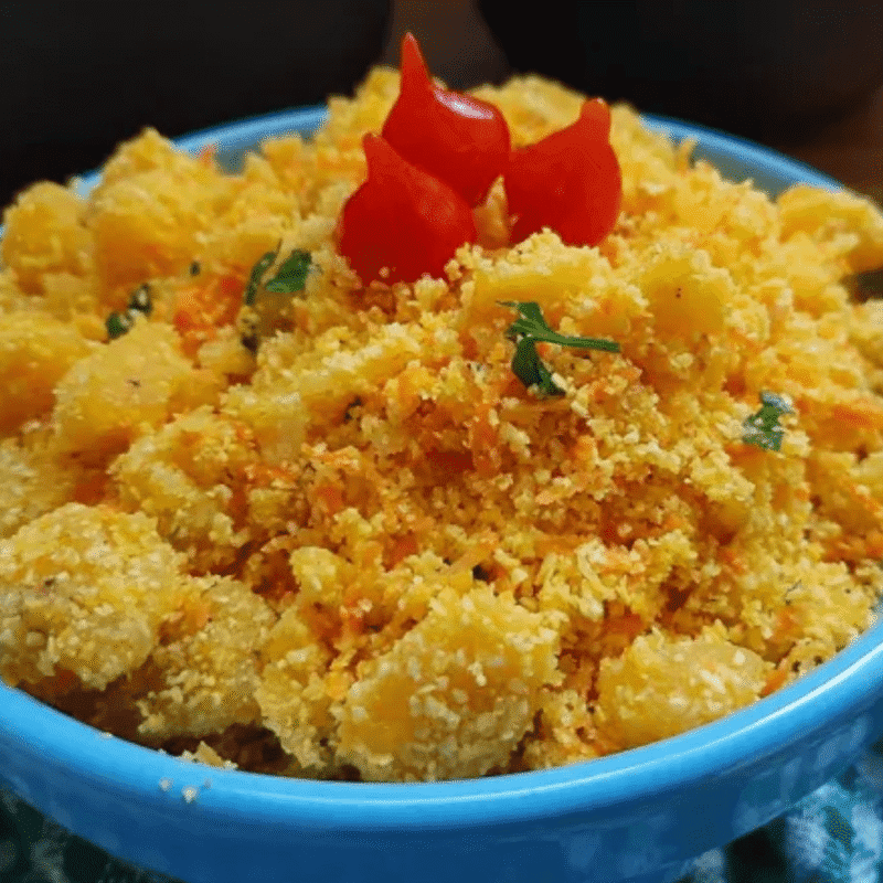 Farofa de banana — tostada, aromática e com pedaços de banana caramelizada. Um acompanhamento brasileiro com personalidade.