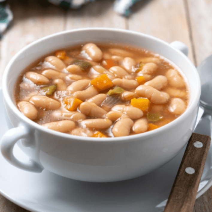 Feijão branco orgânico temperado com alho, azeite e ervas — cremoso, proteico e incrivelmente versátil. O acompanhamento que combina com tudo.