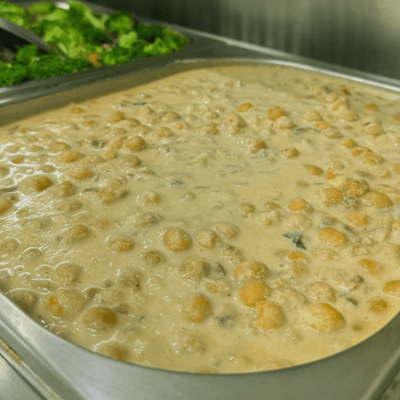 Grão-de-bico com creme de milho — suave, nutritivo e naturalmente adocicado. Conforto vegetal em cada colherada.