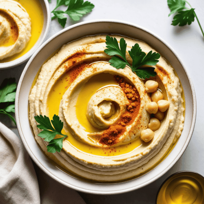 Homus artesanal de grão-de-bico orgânico — cremoso, aveludado e temperado com azeite e especiarias. O clássico árabe do jeito que deve ser.
